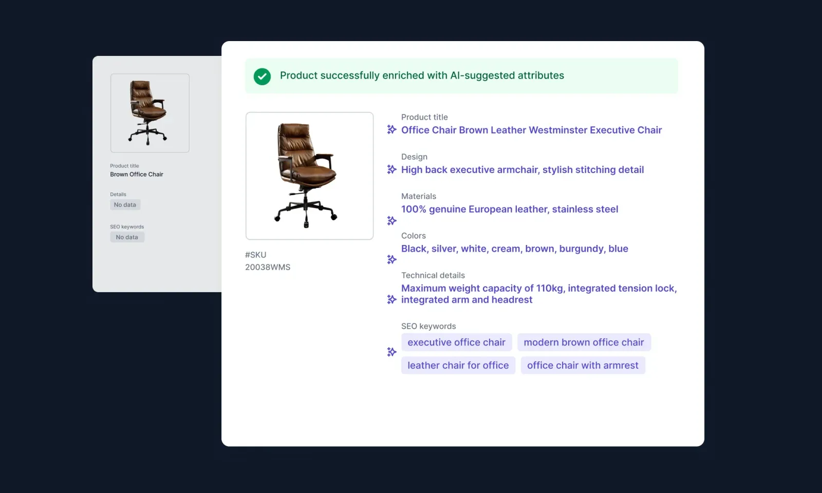 Help customers easily find the right pieces through accurate specs, consistent data, and well-tagged categories. Recommend pieces that match their taste and space.